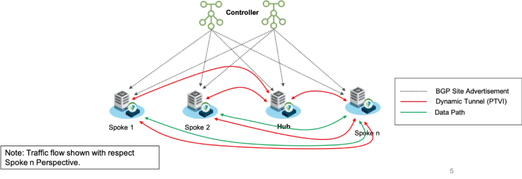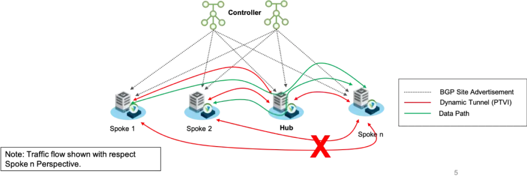 Spoke to Spoke Direct – This is a setup where there there is a Direct connection between the Spokes (within a Spoke-group), bypassing the Hub. In case of a Diagonal transport failure between two spoke, the communication happens via the Hub.
