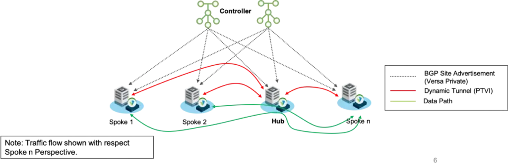 Versa Secure SD-WAN supports all kinds of overlay topologies – Full Mesh and Hub & Spoke. Hub & Spoke topology can be deployed in three additional flavors-