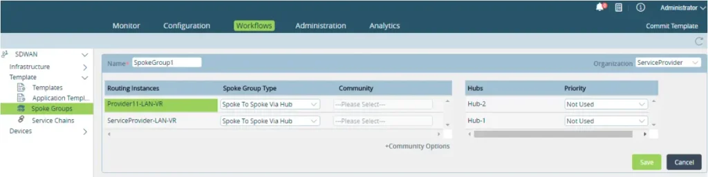 Step 1: Create the Spoke Group under the Workflows > Spoke Groups menu
