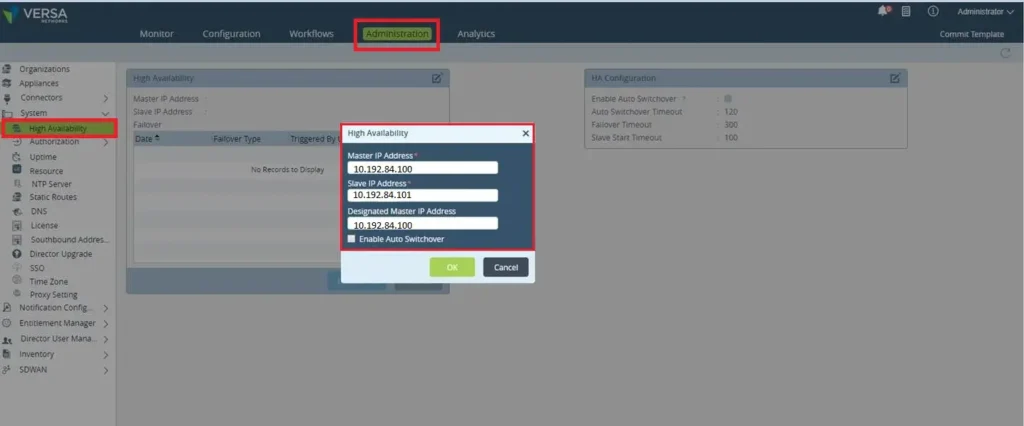Step 1: Login into Master Director and Configure the High Availability Parameters. Navigate to Administration > System > High Availability