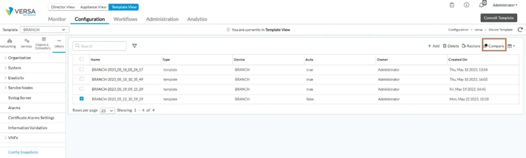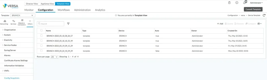 Managing Template Snapshots on Versa SD-WAN
